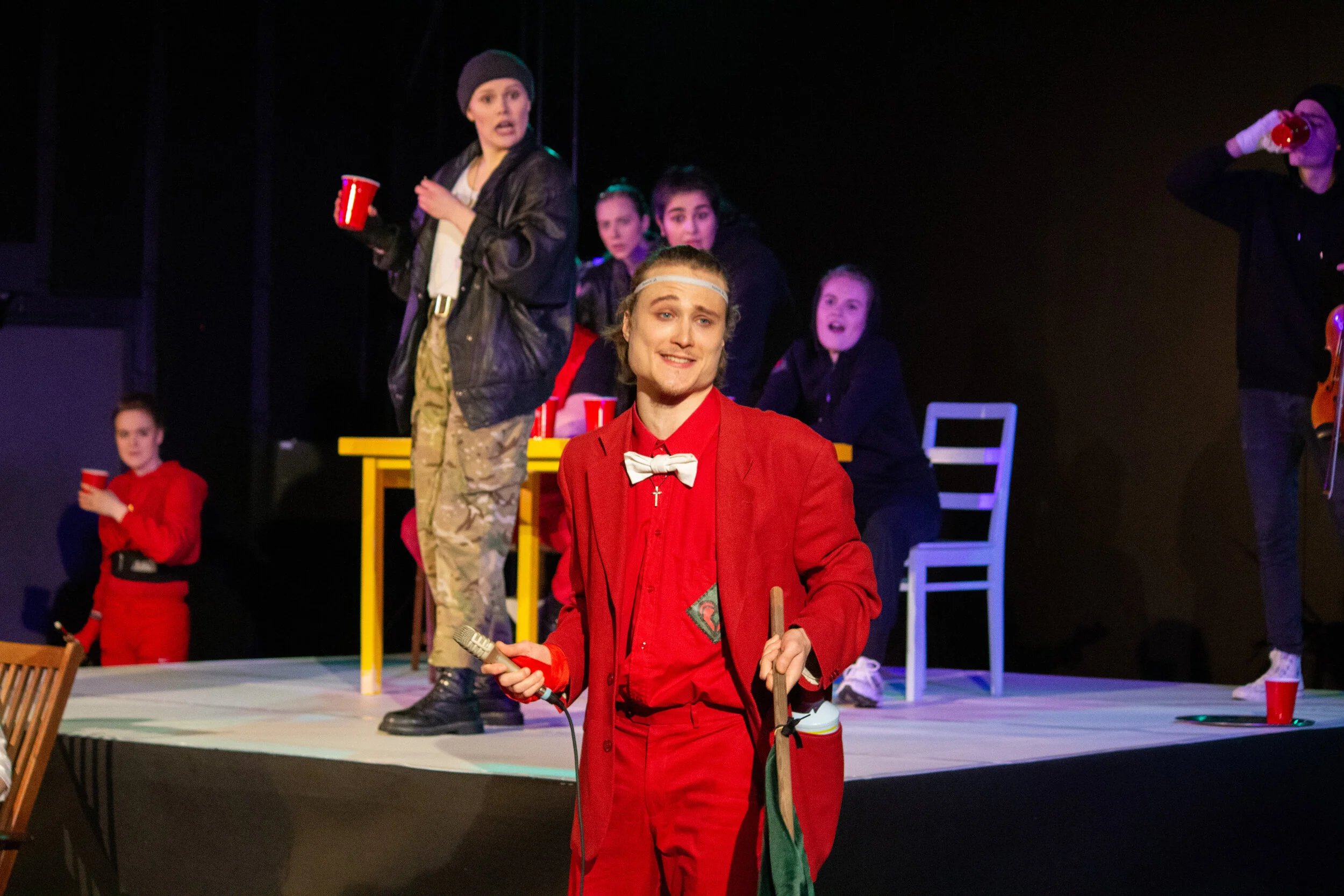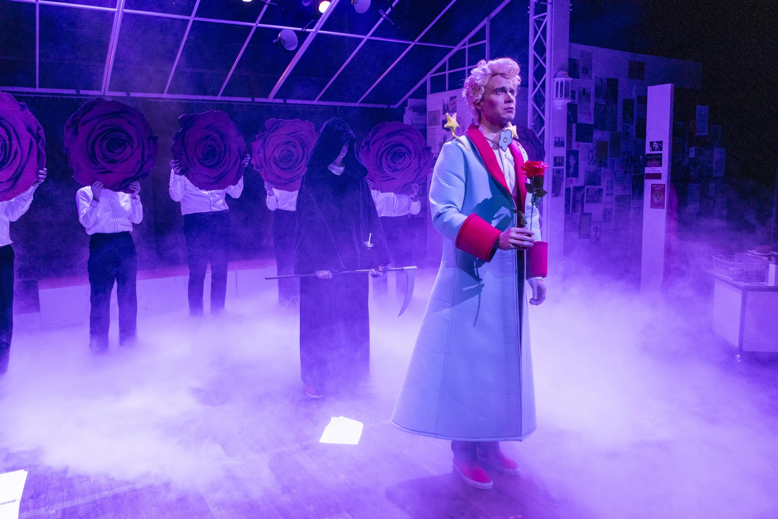 “Young guest director Ona Korpiranta, with the strong support of her team, tackles all the theories in the hefty 170-page graphic novel, from Ancient Greek philosophers to Beyoncé’s hit song Irreplaceable. The aim is to turn explanations into flesh. The result is delightfully funny and gloriously open to interpretation. The graphic novel The Redest Rose Blooms truly blooms on stage.”
