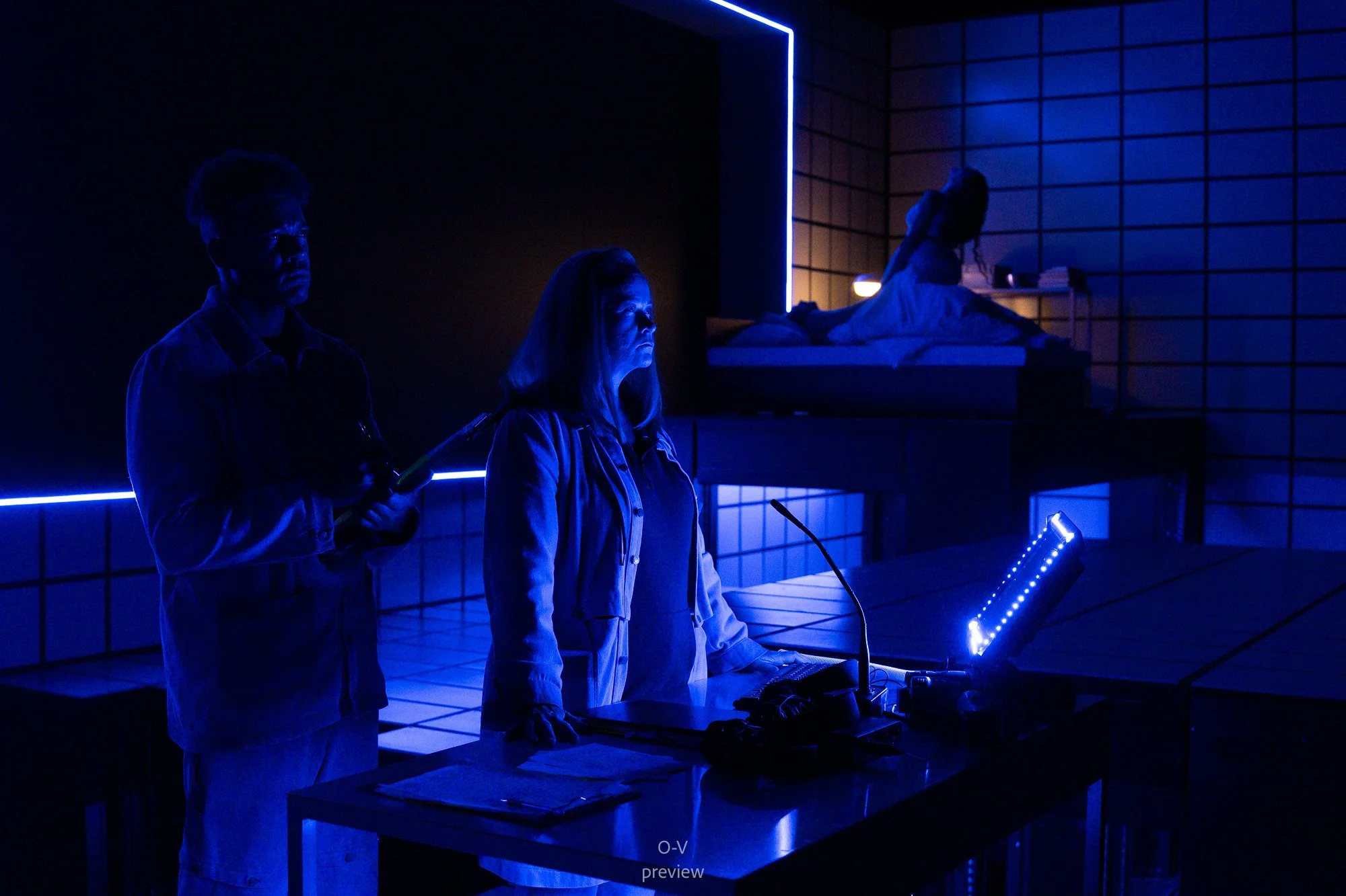 The play was written in 2019 by David Greig and translated into Finnish by Aleksi Milonoff. Originally a novel by Stanisław Lem (1961) and a film by Andrei Tarkovsky (1972), this psychological sci‑fi explores humanity’s relationship with the unknown. This young creative team also focuses on humanity’s need for control and dependency on others.